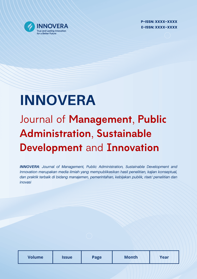 INNOVERA: Journal of Management, Public Administration, Sustainable Development and Innovation is a peer-reviewed, open-access scientific journal published by PT. Global Inovasi Abadi. The journal serves as a platform for scholars, researchers, practitioners, and policymakers to share and disseminate their work in the fields of management, governance, public administration, sustainable development, and innovation.